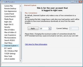 FazitXdN Tweaker bietet erfahrenen PC-Nutzern einige nützliche erweiterte Windows-Einstellungen. Die Freeware deckt zahlreiche Extrawünsche von Windows-Nutzern der Betriebssystem-Versionen XP, Vista und 7 ab.