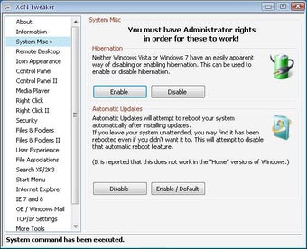 Mit XdN Tweaker ändert man unter anderem Kontextmenüs, Standardansichten und Ordnereinstellungen. Der Windows-Werkzeugkoffer beinhaltet etwa 20 erweiterte Systemanpassungen. Beispielsweise aktiviert oder deaktiviert man das automatische Herunterfahren des PCs nach einer Software-Aktualisierung, stellt den Ruhezustand nach den eigenen Wünschen ein oder setzt die automatische Verknüpfung des Windows Media Players mit Multimediadateien außer Kraft. Bei Bedarf greift man mit dem Tweak-Programm auch in Benutzerkontensteuerung sowie Sicherheits- und Netzwerkeinstellungen ein.